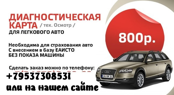 Данные для оформления вашей диагностической карты: